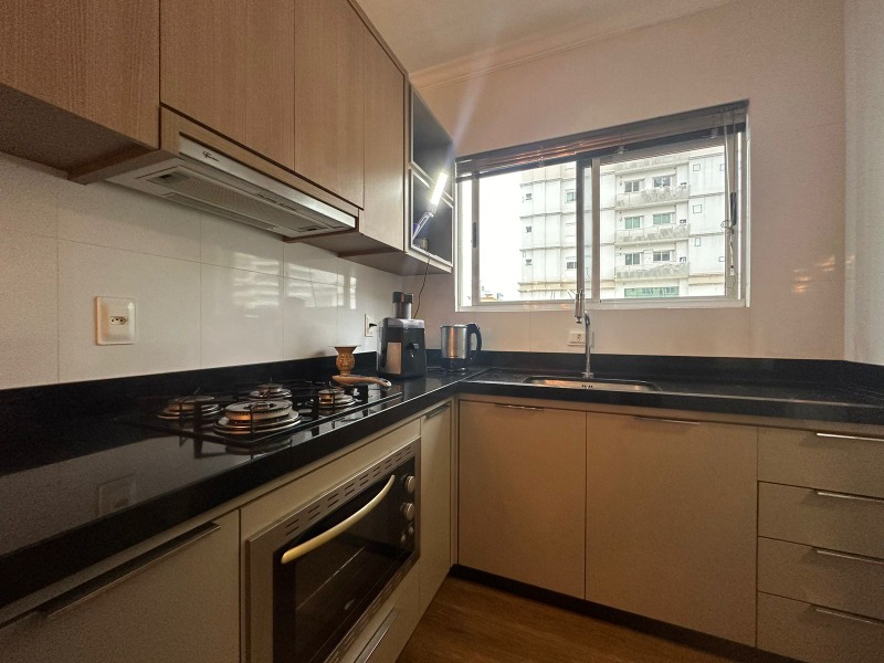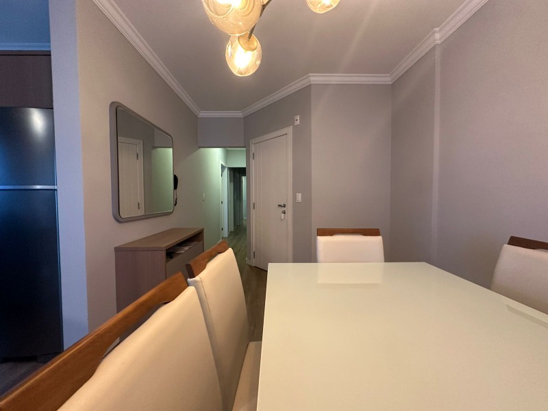 Ótimo apartamento de 3 quartos, sendo 1 suíte, todos com cama box de casal, ar split e guarda roupas sob medida, 2 banheiros completos, sala de estar com Sofá, TV, Wifi, integrada com sala de jantar e mesa de 8 lugares. Sacada aberta com churrasqueira, mesa e vista para o mar e para a avenida principal. Vaga dupla para 2 carros médios localizada no térreo. O prédio possui elevador e esta localizado a 100 metros da praia, em ótima localização de mar e próximo a supermercado, farmácias e ótimos restaurantes.
