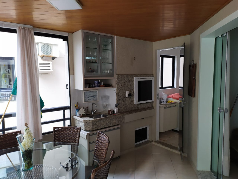 ampla sacada com churrasqueira fechada com vidros temperados e lateral ao mar, predio com elevador na melhor localização de mar da Meia Praia, proximidades de Bancos, restaurantes, bares, conveniências, farmácias.