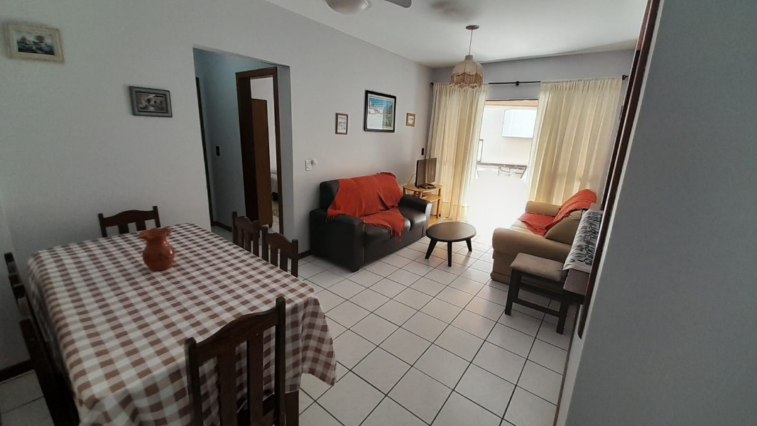 Apartamento na quadra do mar, com 2 dormitórios, sendo 01 suíte com ar condicionado e cama de casal, mais 1 dormitório com ventilador de teto, cama de casal e 2 colchoes de solteiro avulso, sala estar com mesa de jantar, sofá, televisão e internet Wifi, cozinha estilo copa americana com todos utensílios disponíveis, área de serviço com máquina de lavar roupas, churrasqueira dentro do apartamento, sacada aberta com mesa de 4 cadeiras e com vista lateral ao mar, garagem privativa que cabe camionete. Edificio com saída diretamente para a praia e com excelente localização, na melhor região de praia e próximo de supermercado, farmácias e ótimos restaurantes.